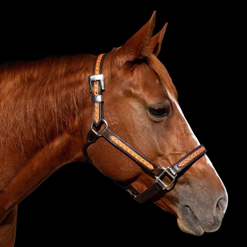Check Lace Halter with chocolate dyed background and stainless hardware.