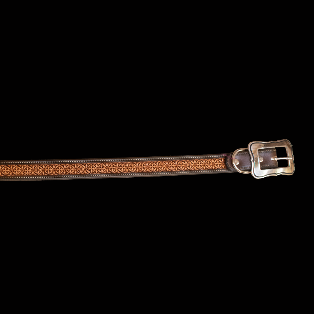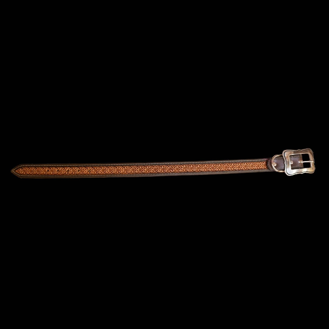 The measurements are width x length. Length of the collar is measured from the End of the belt to the center hole. (example in photos)