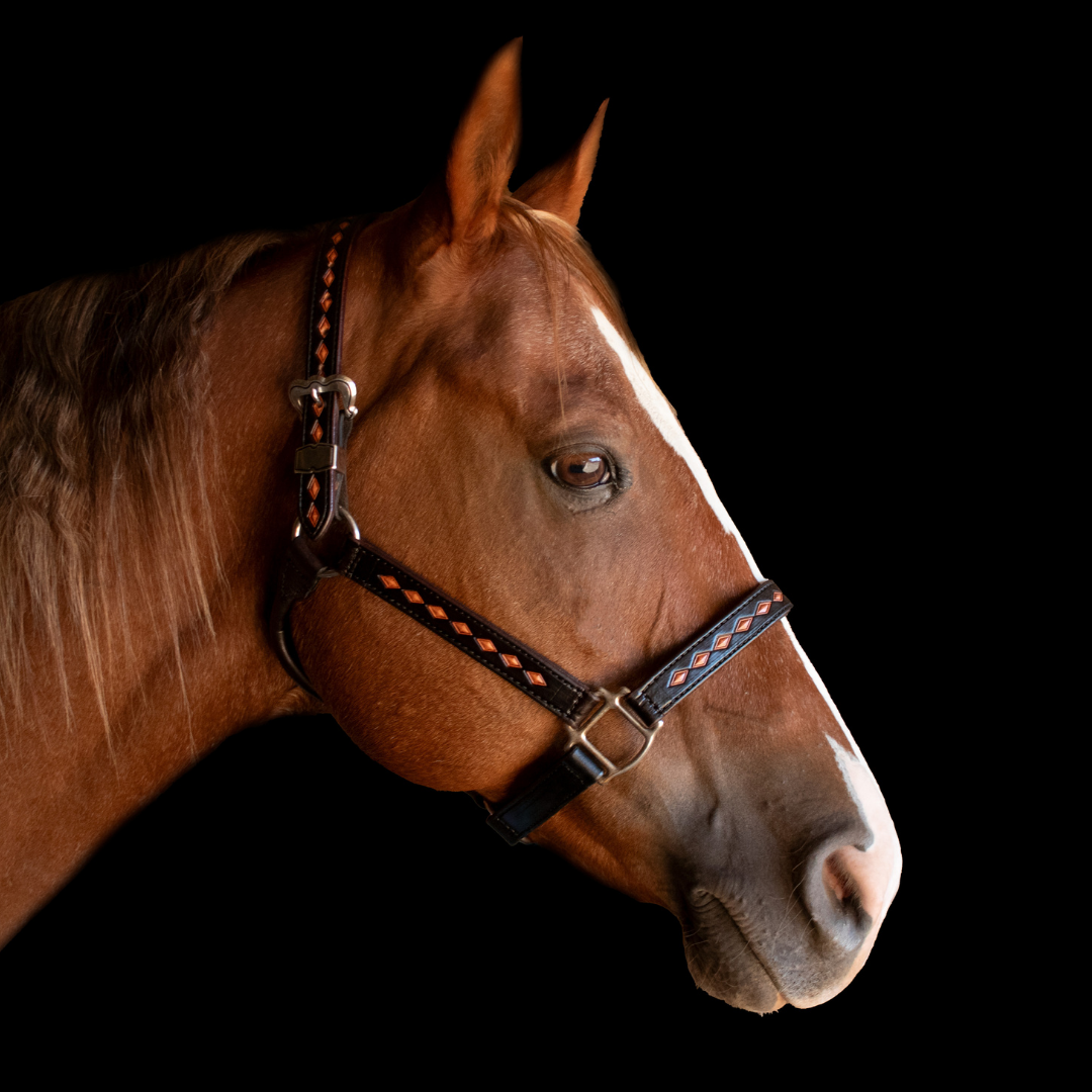 Floral Tooled Halter with chocolate dyed background and stainless hardware.