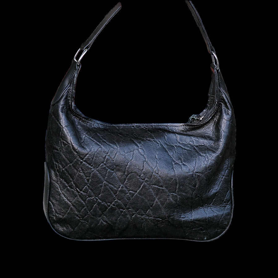 This Hobo zipped bag is lined and has two interior pockets.